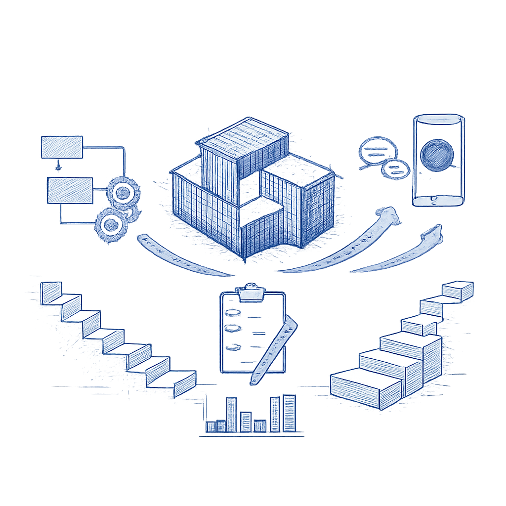 Ми дивимось на звичні процеси нестандартно: знаходимо приховані вузькі місця, формуємо 2–3 концепти, узгоджуємо логіку — і доводимо рішення до стабільної роботи в реальних умовах.