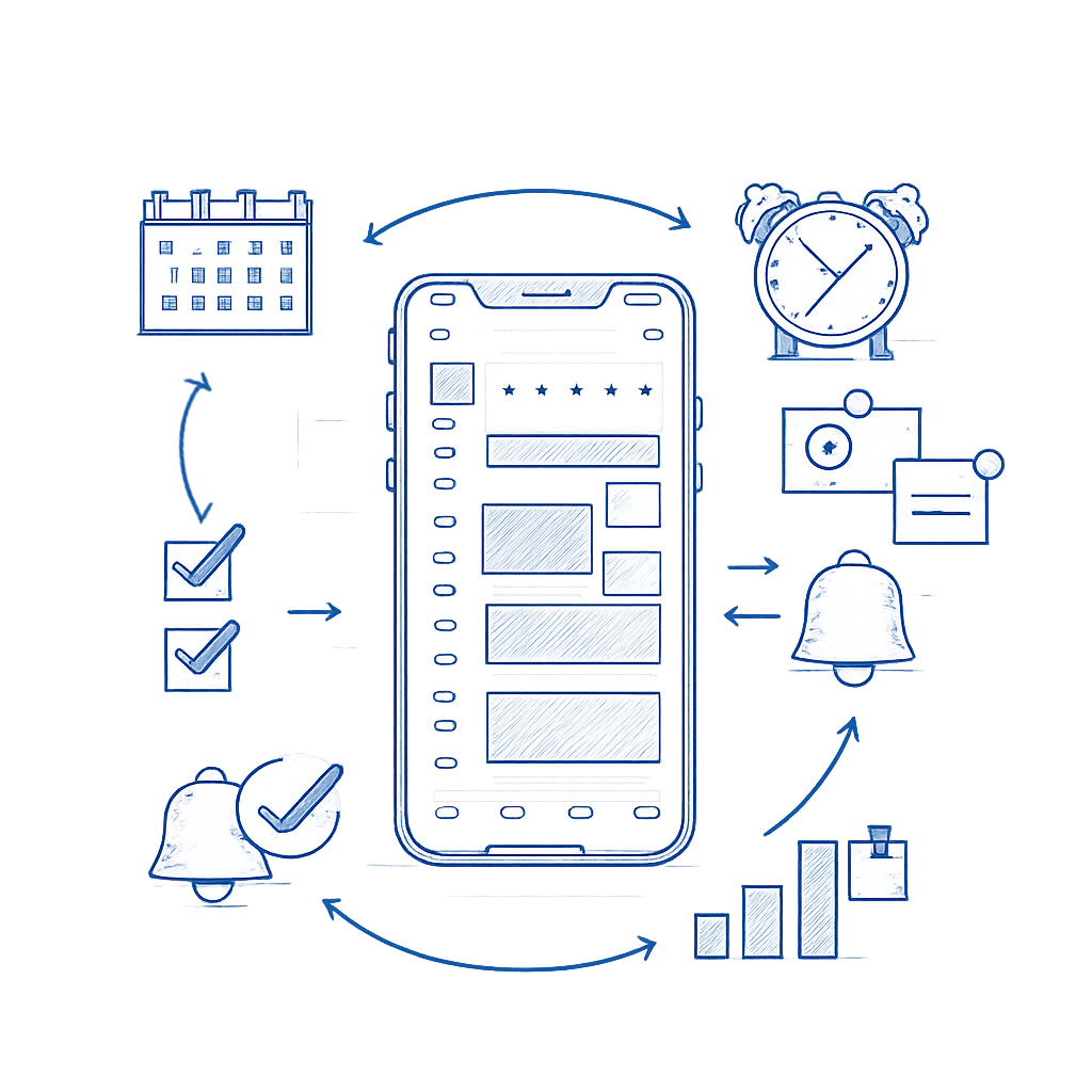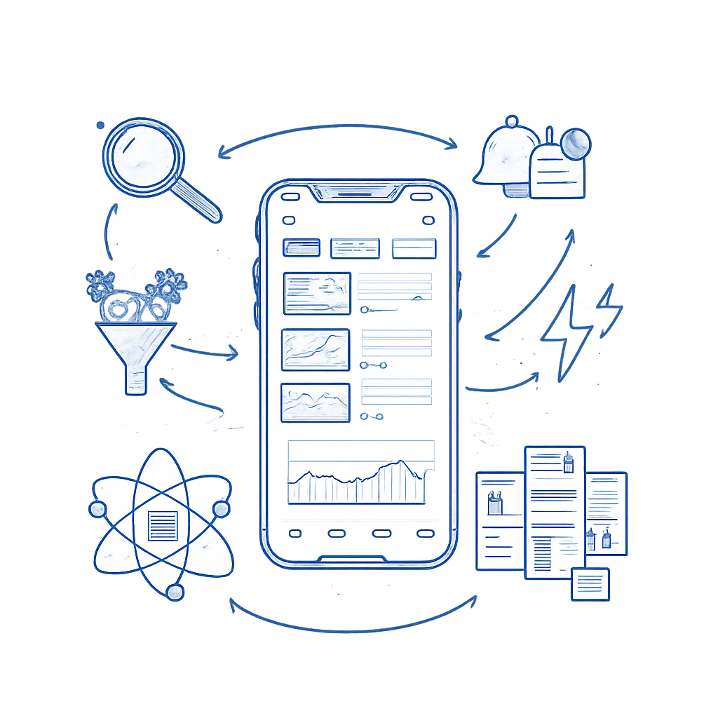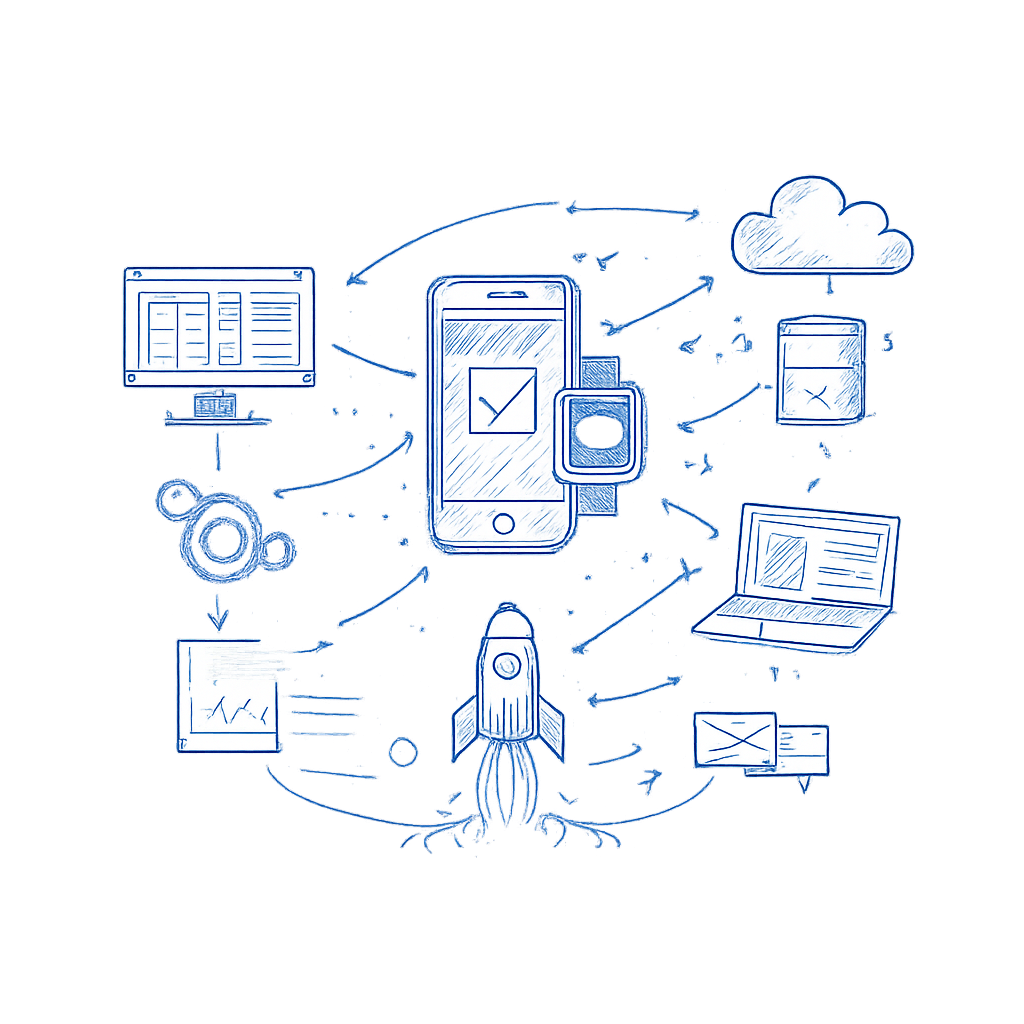 Продукти й внутрішні системи “під ключ”: архітектура, UX, розробка, запуск, підтримка — включно з мобільними застосунками, інтеграціями з IoT та каналами сповіщень.